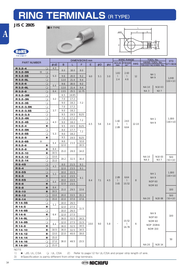 หน้าแรก > > Nichifu (NTM) > Ring Terminals (R Type) - Nichifu (NTM) หางปลาย้ำสายไฟ > R1 25-3.5S - Nichifu (NTM) หางปลาย้ำสายไฟ